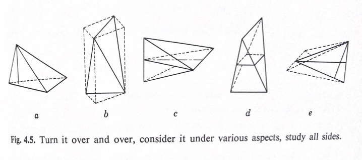 These last two lines from his 1945 best-seller, How to Solve, sound like a quote from the bulletins of Black Mountain College. In fact Pólya did not have, as far as I am aware, any association with the college. But his writings reflect and focus the educational approach and interests of his contemporary at BMC, Max Dehn.